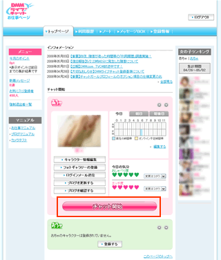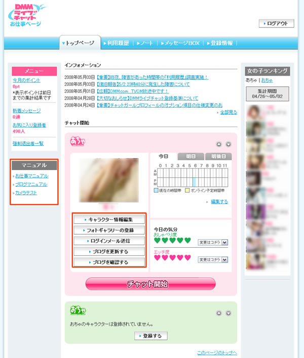 - チャットレディ「お仕事ページ」の各種機能